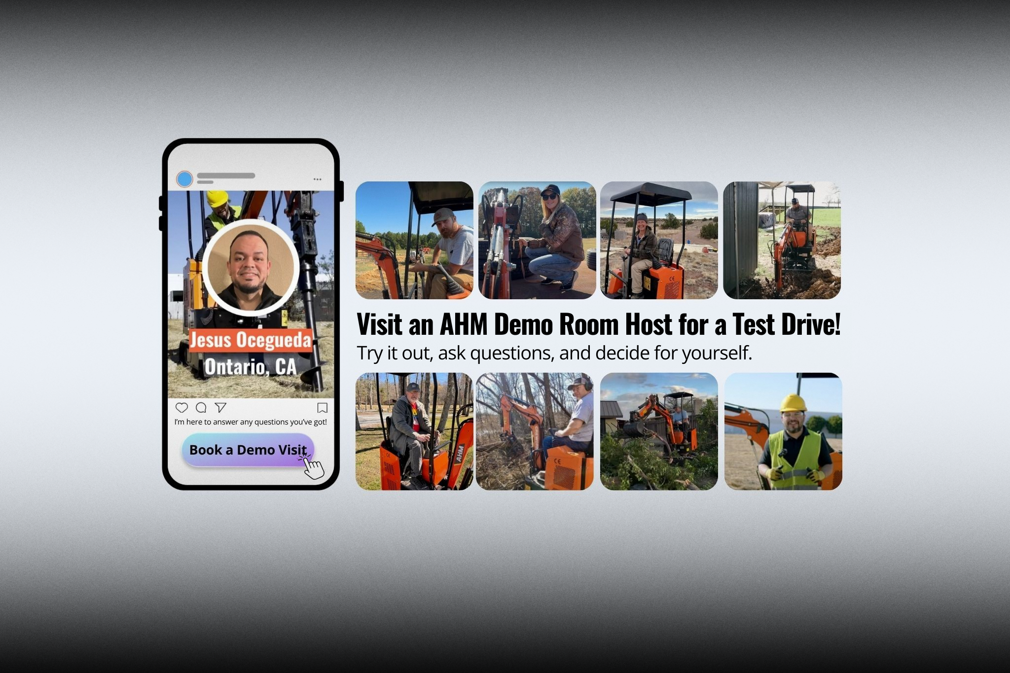 Yes! After your demo, you’ll receive an exclusive promo code or discount to use on your AHM mini excavator purchase.