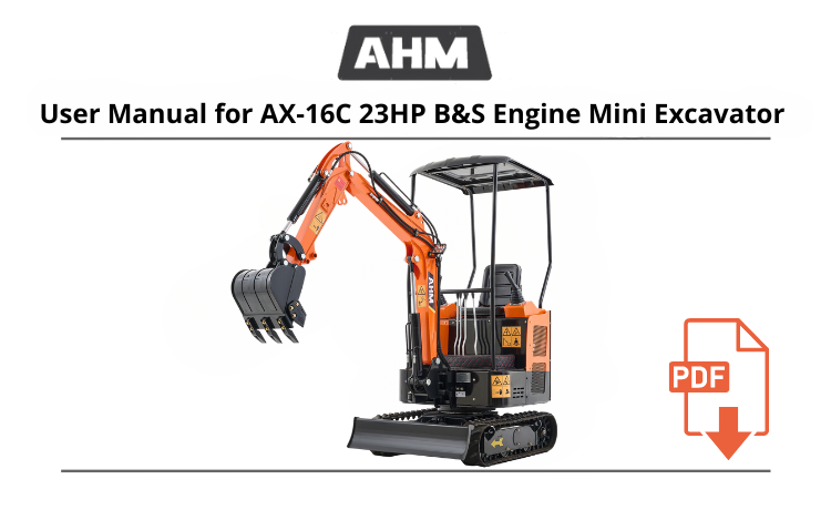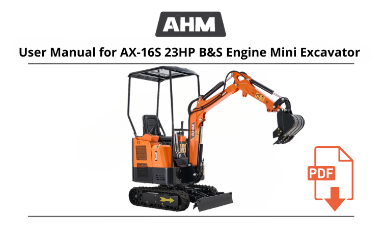 AX-16S 23 HP Mini ExcavatorDownload the ManualOperation and Maintenance Manual for AX-16S 23 HP Mini Crawler Excavator with Briggs & Stratton Engine