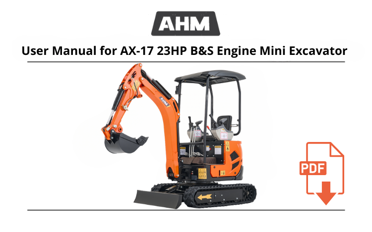AX-17J 23 HP Mini ExcavatorDownload the ManualOperation and Maintenance Manual for AX-17J 23 HP Mini Crawler Excavator with Briggs & Stratton Engine