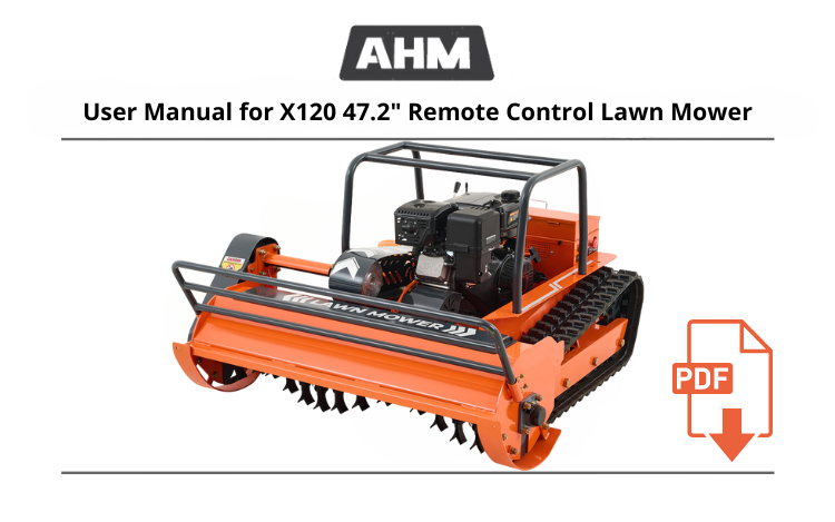 X120 47.2" Remote Control Lawn MowerDownload the ManualOperation and Maintenance Manual for X120 Remote Control Lawn Mower with 47.2" Cutting Width