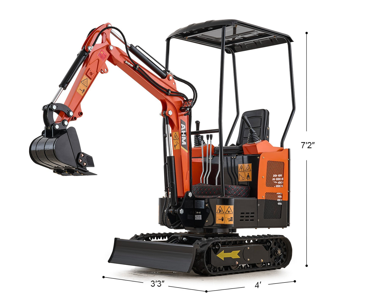 AHM mini excavators keep you safe with work lights on the digging arm for better visibility, a seatbelt for security, a canopy for rain and sun protection, and waterproof, non-slip mats underfoot. Stay safe and focused on the job.