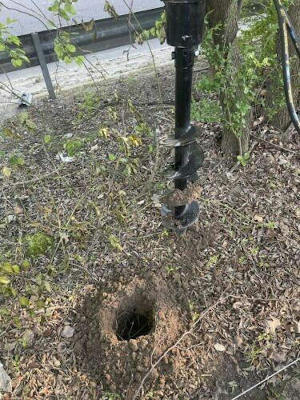 This auger was a phenomenal back saver, 23 holes drilled 2’ deep in a matter of an hour, do that with a post hole digger or even a gas/electric auger. Even heavy roots a little bit of time working at it and only on a 1 ton auger will chew through it.