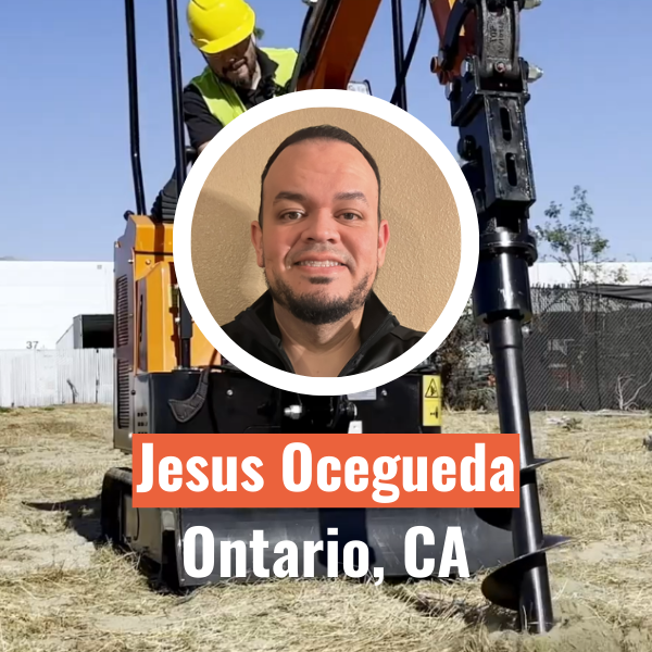 Bio: Hey, I’m Jesus Ocegueda here in Ontario, California. I’ve got the AX-16 mini excavators ready for you to try. I know that dropping a few thousand bucks on a machine isn’t an easy call. So, come on down, take them for a spin, and I’ll help you figure out which one’s the right fit. I’m here to answer any questions you’ve got!